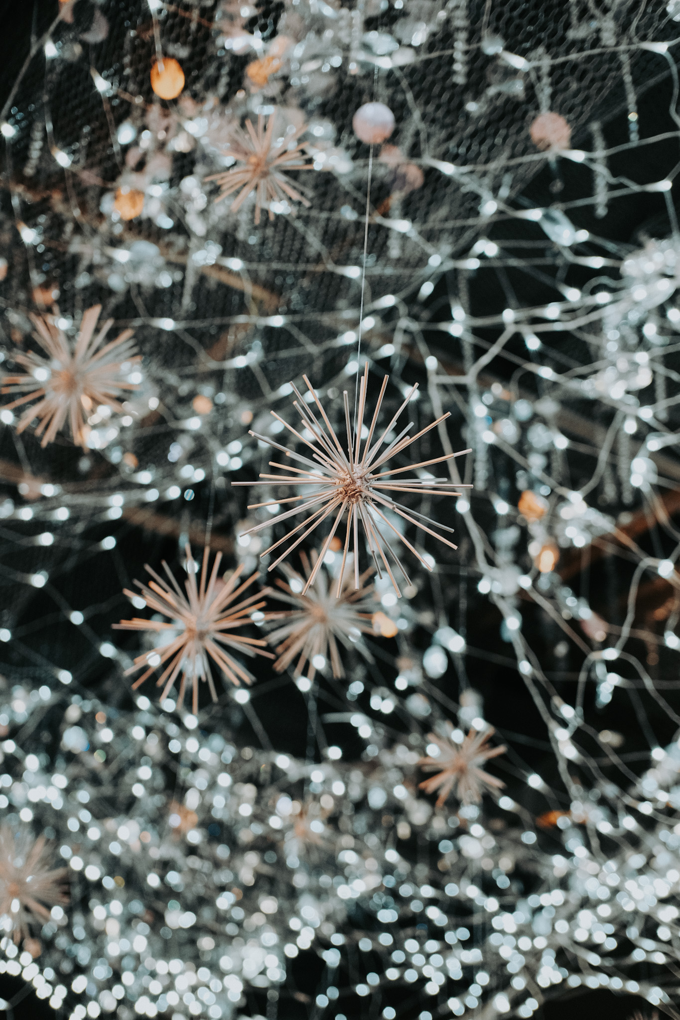 Like shooting stars gracing the night, strands of stars extend downwards connecting the sky to the earth, enhancing the otherworldly feel inviting onlookers to gaze into.